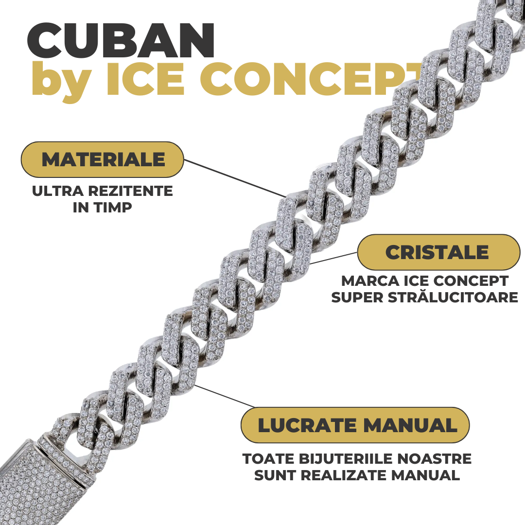 Brățară Cuban femei, barbati din Argint Rodiat reprezintă un accesoriu foarte exclusivist datorită modului de construire al acesteia. Aplicarea pietrelor este facută bucată cu bucată!