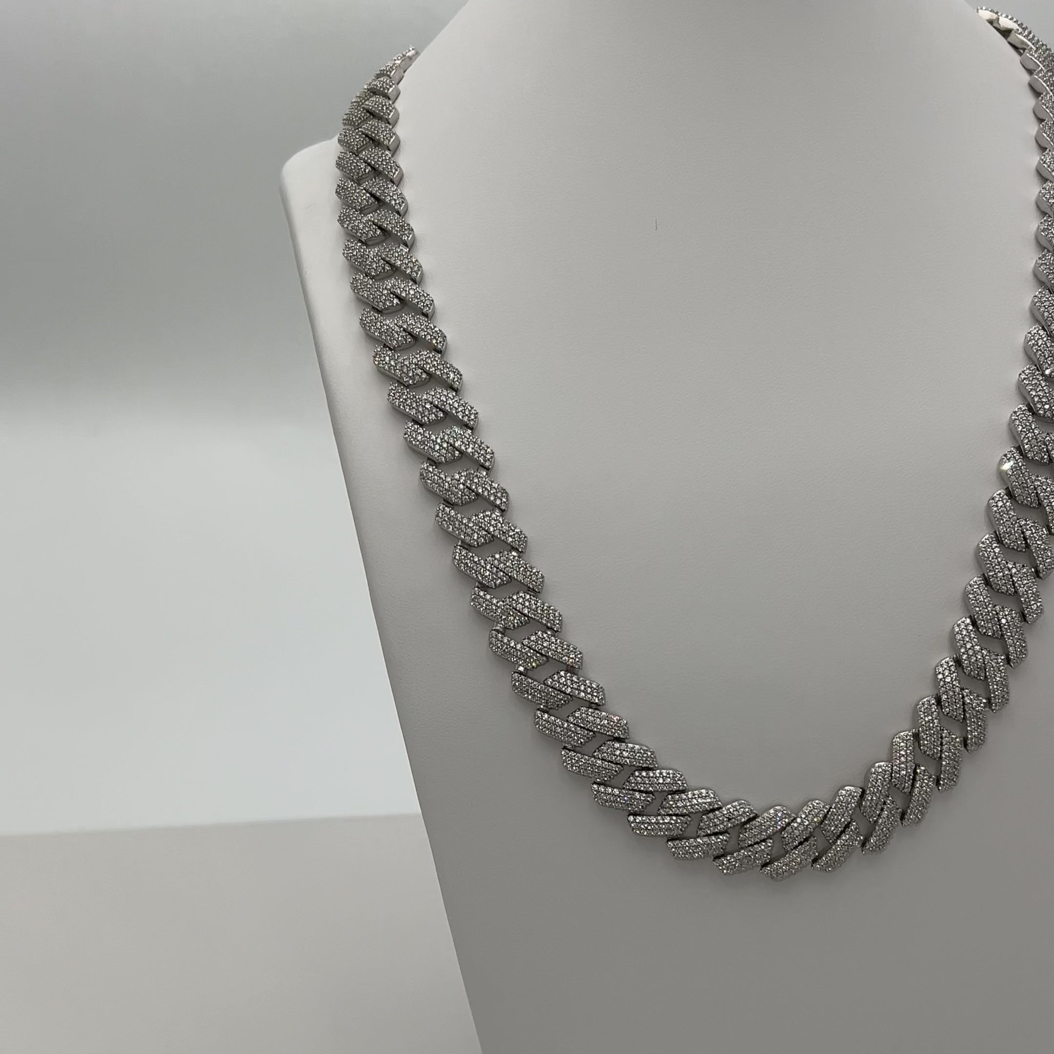 Colier Cuban 100 din Argint Rodiat reprezintă un accesoriu foarte exclusivist datorită modului de construire al acesteia. Aplicarea pietrelor este facută bucată cu bucată!